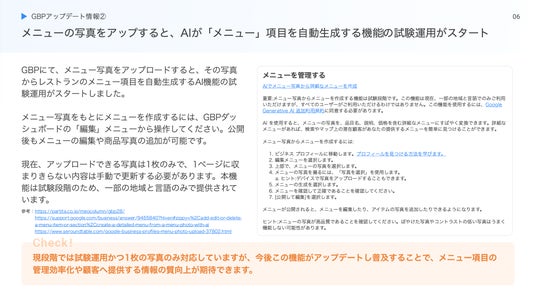 【メニュー写真アップでAIが「メニュー」項目を自動生成 他】Googleマップ・Googleビジネスプロフィールのアップデート情報(2024年10月版)を無料公開