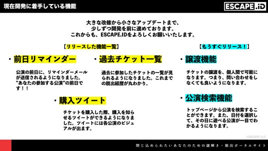 今後もESCAPE.IDは、謎解き・脱出ゲームに参加したい皆様に寄り添い、使いやすいサービスとして進化してまいります。
