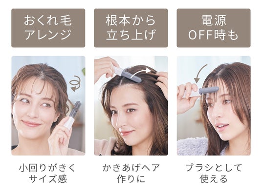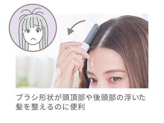 ・小回りのきくコンパクトなサイズ感&ブラシ型で前髪や顔回りの毛、頭頂部の浮いたあほ毛を整える。