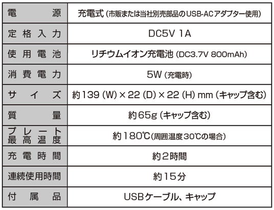 ・充電式コードレス(本体側USB Type-C対応)で外出先でも使いやすい。