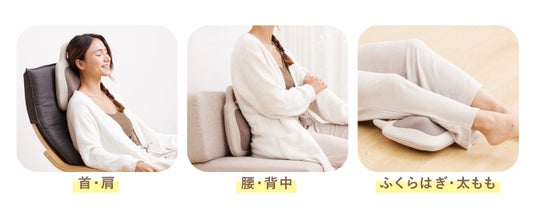 シーソーのように交互に動くもみ玉が、からだのカーブにフィットし、筋肉をやさしくほぐします。心地よい圧でコリをじんわりほぐし、温かさも加わって、毎日のボディケアにぴったりのマッサージクッションです。
