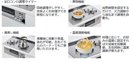 ■レンジフード連動機能 コンロの点火・消化に連動しレンジフードの運転・停止が自動で行えます。