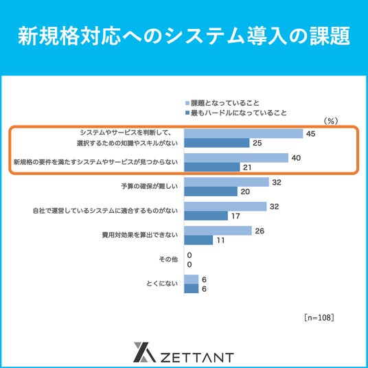 「システム選定のための知識・スキルが不足」「新規格に対応できるシステムが見つからない」が課題