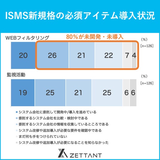 【ISMS改訂への対応状況は?】ISMS新規格に追加の管理策「WEBフィルタリング」「監視活動」を80%の中小企業が未開発・未導入
