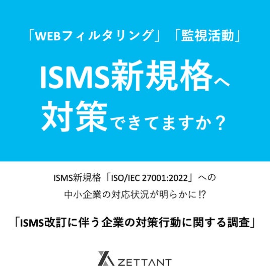 株式会社ゼタント(本社:東京都中央区、代表取締役:久保 健)は、ISMS(情報セキュリティマネジメントシステム)の新規格「ISO/IEC27001:2022」について、中小企業の対応状況を明らかにするため、従業員数300名以下の企業におけるISMSの決裁者や責任者、管理者を対象とした「ISMS改訂に伴う企業の対策行動に関する調査」を実施しました。