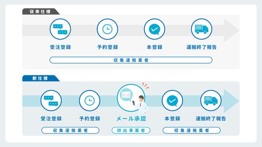 収集運搬業者がDXE Stationで登録したマニフェスト情報において、JWNETへの本登録前に、排出事業者による承認ステップを追加することが可能となります。