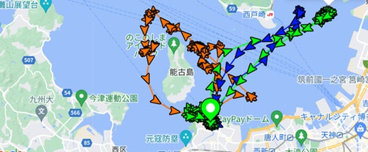 レンタルボートGPS位置情報の確認画面(西福岡マリーナ マリノアで事前トライアル)