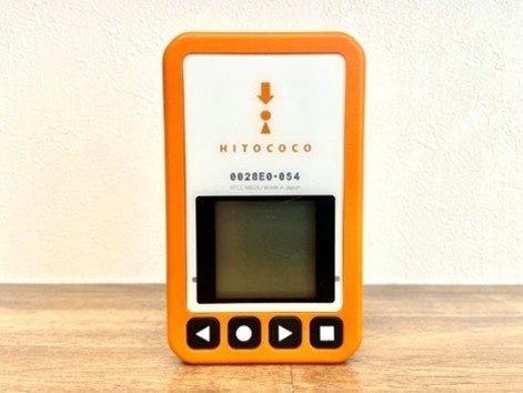 「ココヘリマリン」専用発信機 幅・高さ約5センチ、厚さ約1センチの携帯型の小型端末