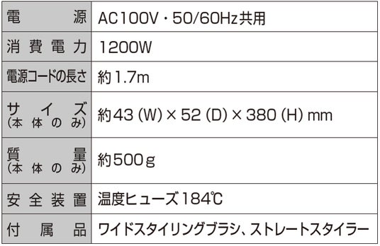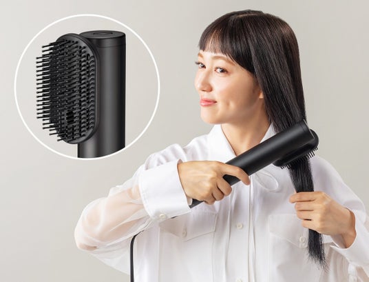 ・付属品として、コーム状プレートで髪をときながらストレートにできる「ストレートスタイラー」と、先玉付きのブラシが髪を逃さずスタイリングできる「ワイドスタイリングブラシ」の2種つき。髪の乾燥だけでなくスタイリングにも。