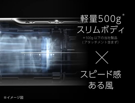 ・BLDCモーターを採用。軽量500g(※)のスリムボディでありながらスピード感のある風でストレスフリーにヘアドライ。