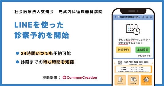 コモン・クリエーション株式会社は、社会医療法人玄州会 光武内科循環器科病院(以下、光武病院)と協業し、LINE公式アカウント「光武内科循環器科病院」において、トーク画面上から初診予約と定期受診の予約ができる機能を2024年11月1日より開始いたします。