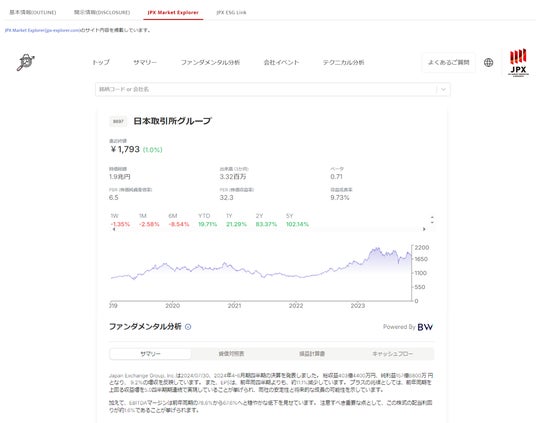 東証上場銘柄の株価や時価総額、業績情報、さらにはESG/サステナビリティ情報まで閲覧可能に。