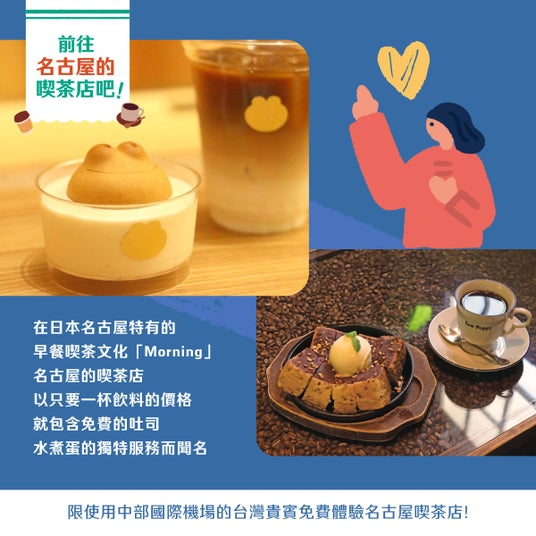 中部国際空港利用促進協議会が主催する台湾人向けキャンペーン「前往名古屋的喫茶店吧!」は、昨年韓国人向けに開催しており、本年第二段として台湾人向けに行います。