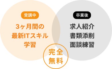 20代向けの3ヶ月間のオンライン学習でエンジニアを目指す完全無料の転職コースとなります。