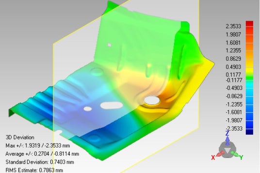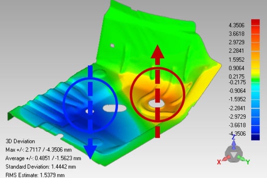 「偏差補正」機能により、製造工程で発生する材料の収縮や膨張に対し、3D比較結果を基にポリゴンを自動で調整します。これにより、実物により忠実な3Dモデルを作成でき、精密な設計プロセスが支援されます。