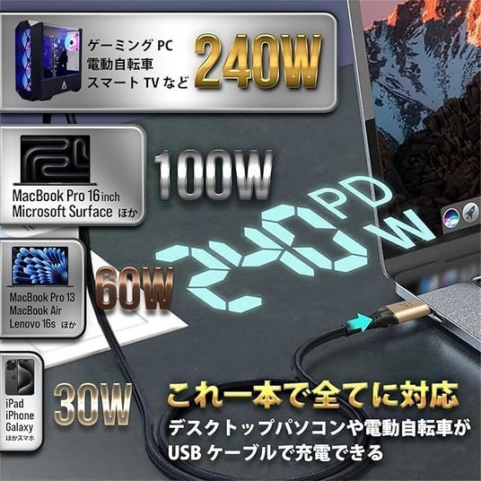 デバイスの充電、超高速。240W急速充電