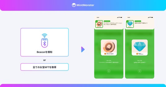 ビーキャップが提供する屋内位置情報サービス「Beacapp Here」とクリプトリエの「MintMonster」が連携