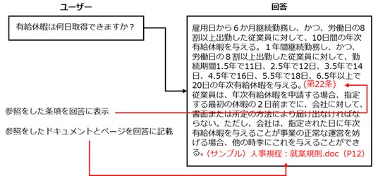 今回開発したのは、社内規程やマニュアル等の社内文書を解析し、従業員の質問に対して自動応答する対話型のAIです。担当部署の問い合わせ対応の省力化とコスト削減につながると同時に、問い合わせ側の従業員の業務効率化や人材育成効果も期待できます。