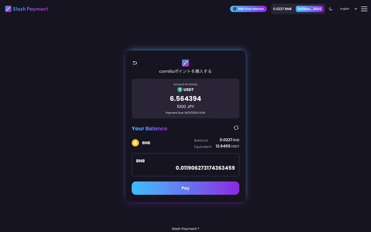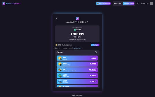 暗号資産決済「Slash Payment」は、「comilio」のポイント購入時の決済機能に導入され、各ブロックチェーンのさまざまな暗号資産での決済をサポートしています。ぜひこの機会にSlash Paymentでの決済をご体験ください。