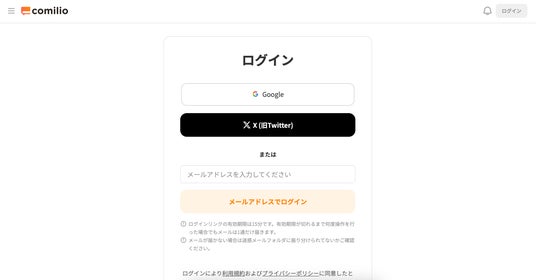 1 comilio( https://comilio.app/ )上のログインボタンをクリック
