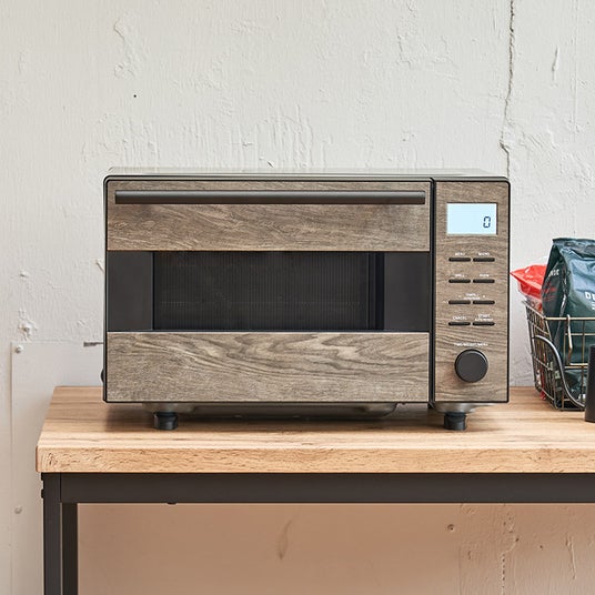 スタイリッシュでコンパクト。木目柄が美しいオーブンレンジ