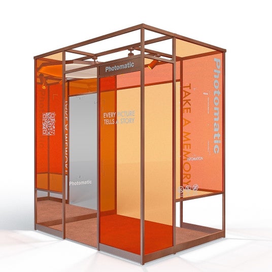 銅色のフレームにオレンジのガラスが嵌め込まれたキューブは、 ブランドのシグネチャーであるフォトブースから着想を得たもの。 韓国発のセルフフォトブース「Photomatic」を日本に浸透させるために、今後の展開も視野に入れブランドカラーのオレンジを全面に採用しました。 一目で記憶に残るアイコニックな印象を目指しています。