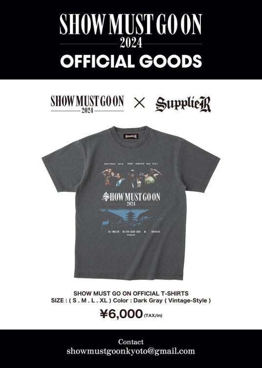 ストリートカルチャーカンパニー株式会社Plus Eighty One(本社:東京都渋谷区)の自社アパレル「SUPPLIER (サプライヤー)」と、京都発ヒップホップフェス「SHOW MUST GO ON」のコラボレーションが決定。2024年11月10日(日)のイベント当日に、京都KBSホールでコラボアイテムを発売開始します。