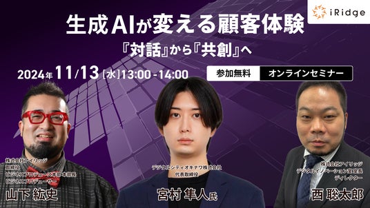 11月13日(水)生成AIがもたらす新時代の顧客体験を学ぶウェビナー開催! ~「対話」から「共創」へ、AIが導くビジネスの未来~