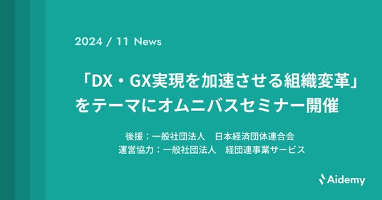デジタル変革に伴走する株式会社アイデミー(本社:東京都千代田区、代表取締役 執行役員 社長 石川聡彦、以下「アイデミー」)は、オムニバスセミナー「DX・GX実現を加速させる組織変革」(後援:経団連、運営協力:経団連事業サービス)をハイブリッド形式にて開催いたします。