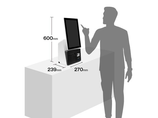 キャッシュレス決済に対応し、券売機、セルフレジ、チケット発券機、自動チェックイン機などとして利用できます。オプションの背面ディスプレイを追加することで、対面販売に対応したセミセルフレジ端末としても活用可能です。