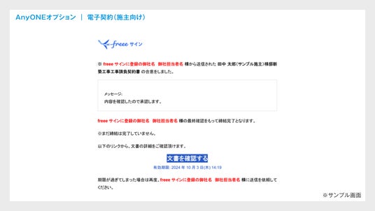 AnyONE の「電子契約オプション」は、フリー株式会社が提供する電子契約サービス「freeeサイン」と連携したオプションです。