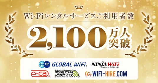 「人と人をつなぐ。」「世界をつなぐ。」のテーマのもと、グローバルWiFi事業、情報通信サービス事業、グランピング・ツーリズム事業を展開する株式会社ビジョン(本社:東京都新宿区 代表取締役社長 COO:大田健司、以下当社)が提供するWi-Fiルーターレンタルサービスにおけるグループ全体のご利用者が、累計2,100万人を突破しました(※1)。