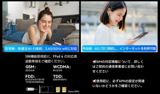さらに、外出先でも安心。4G LTE接続 に対応しており、どこでもインターネットにアクセス可能。複数の周波数帯に対応しているため、どんな場所でもスムーズな接続が可能です。