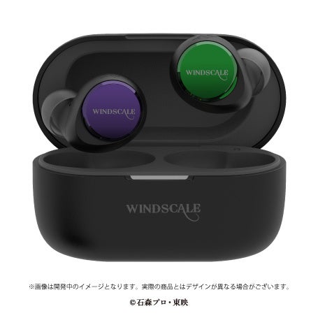 劇中に登場するアパレルブランド「WIND SCALE」とAVIOTのコラボレーションをイメージし、イヤホン本体と充電ケースにロゴをあしらいました。