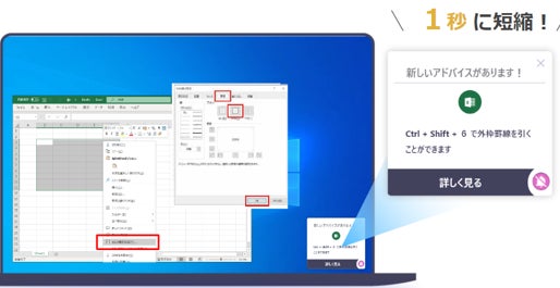 「Litera App(リテラアップ)」は、PCにインストールすることで、日々の操作に合わせて最適なショートカットキーや便利機能をポップアップでアドバイスする業務効率化ソフトウェアです。
