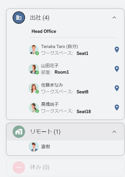 (※)個人設定で機能を有効にしている場合のみ、座席情報が共有されます。