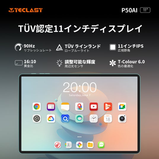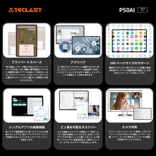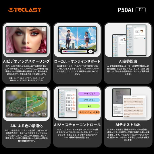 Teclast独自のAI技術を搭載したP50AIは、AIシリーズ初のタブレットで、インテリジェントな機能と高度なパフォーマンスを提供します。