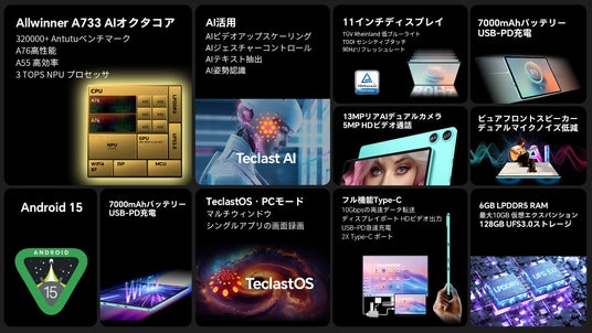 AIを活用したコンピューティング。NPUは、AIベースのタスクにおいて、CPUコンピューティングよりも高速かつ効率的にタスクを処理します。TeclastのAIアプリケーションは、NPU機能を最大限に引き出し、最先端のAI駆動機能により、より革新的で効率的なタブレット体験を提供します。