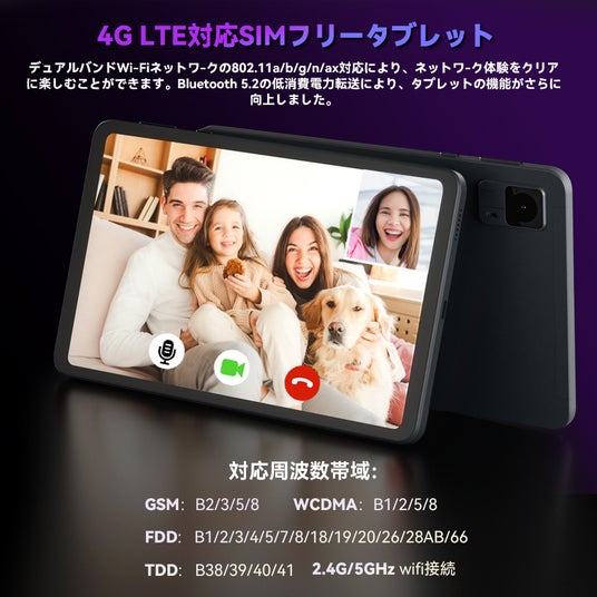 デュアルバンドWi-Fiネットワ-クの802.11a/b/g/n/ax対応により、ネットワ-ク体験をクリアに楽しむことができます。Bluetooth 5.2の低消費電力転送により、タプレットの機能がさらに向上しました。