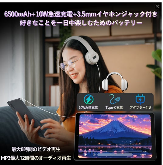Apad2の6500mAhの大容量バッテリーは、効率性を重視して設計されています。エネルギーを意識したプロセッサーと組み合わせることで、持続的なパフォーマンスを実現します。使いやすさを追求した10WType-C充電ポートは、リバーシブル接続に対応し、充電プロセスを簡素化します。