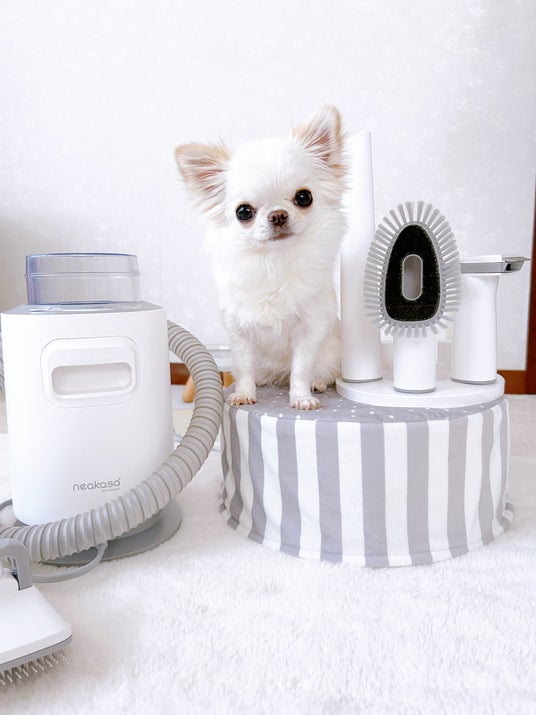 掃除機と一体化1台5つ役のペット掃除機-グルーミングセット「Neakasa P0」にも登場!吸引しながらブラッシング、グルーミング・トリミングできるので、毛の散らばりがなく時間と掃除の手間が省けます。換毛期だけでなく、自宅グルーミングにオススメの製品です。