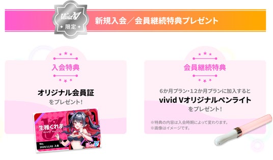 Vivid Vファンクラブの新規入会特典/会員継続特典