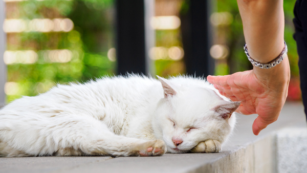 猫の正面に座って、いきなり頭を撫でようとすると警戒されるので(普通に考えて、巨大な生物がいきなり上から手をかぶせようとしてきたら怖いよね)、頭をそっと撫でたいときは横から。