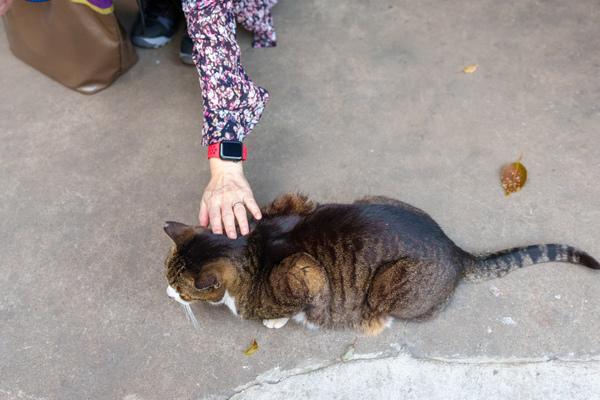お次は、同じく老齢のお寺の猫。ここは外国人観光客が多く、いろんな人が見つけては猫を撫でている。慣れてる人はリラックスして、そうじゃない人はおそるおそる。