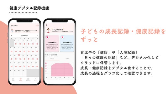 記録した健康記録はデジタルで保存され、見返すことができ、適時医療従事者に共有ができるだけではなく、体調をグラフで可視化し、成長の過程を「見える化」し、いつでもどこでも確認ができます