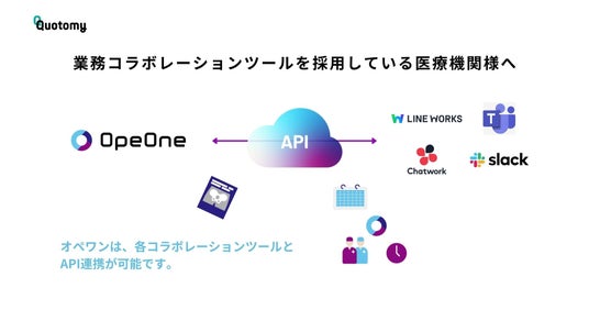 株式会社クオトミー(東京都千代田区、代表取締役CEO 大谷隼一、以下「当社」)が医療機関向けに開発・提供するスマート手術台帳OpeOne(以下オペワン)は、業務コラボレーションツールとのAPI連携を開始したことをお知らせします。