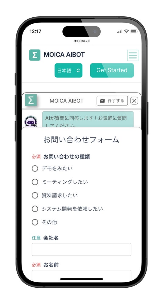 MOICA株式会社が運営するMOICA AIBOTは、Web埋め込み型のAI対話型のチャットボットに、問合せフォーム送信機能を追加し、リード顧客獲得向上というあらたな価値を提供