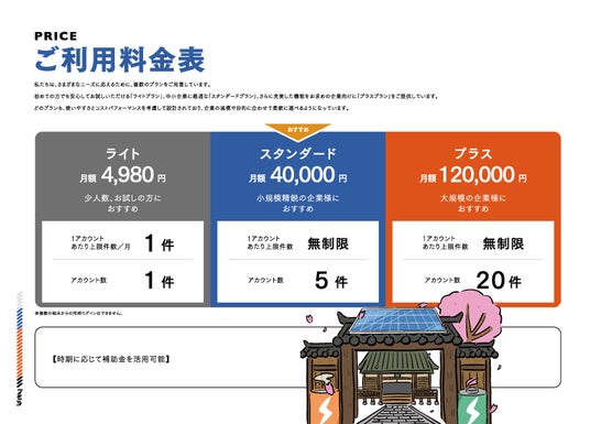 サービスご利用料金は月額制になります。
