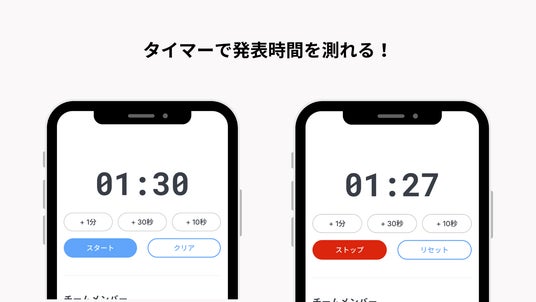 「シンプル Good & New」には、発表時間を計測できるタイマー機能が搭載されています。