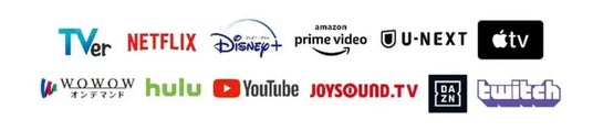 世界中の映画やドラマ、スポーツ、ゲーム配信、ダイレクトに繋がります。YouTube、TVer、Netflix、Disney+、Prime Video や Apple TV+、DAZN、FIFA⁺、Twitch、TikTokなど600以上のVODアプリから好きなコンテンツが楽しめます。